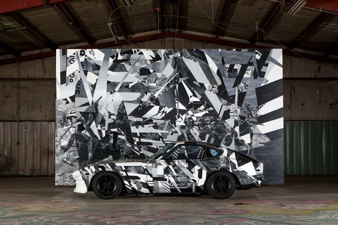 Acrylic on panel, oil enamel on 1975 Datsun 280Z,144" x 288" x 60" and 47" x 155" x 64.5"
